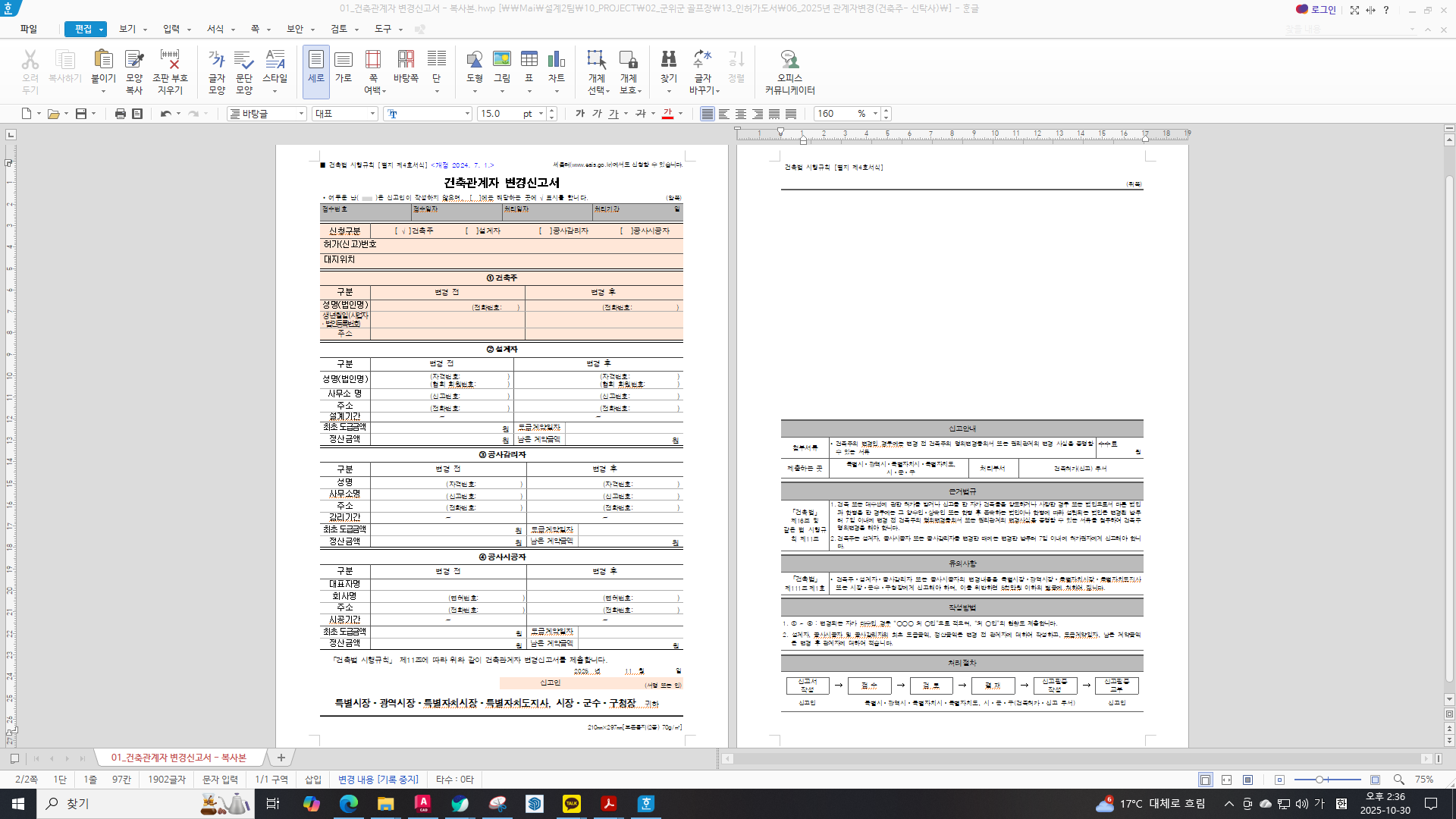 1. 건축관계자 변경 신고서