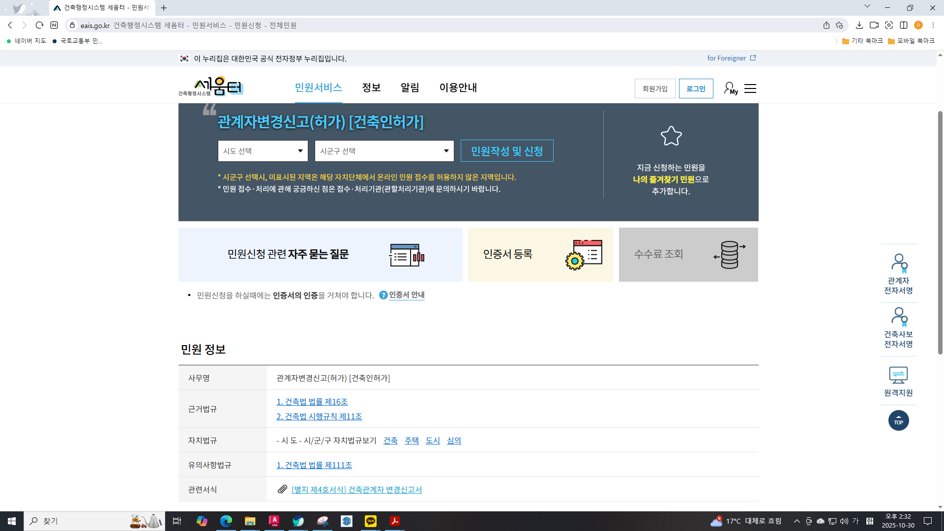 건축관계자 변경 신고서는 세움터에서도 다운받을 수 있다.