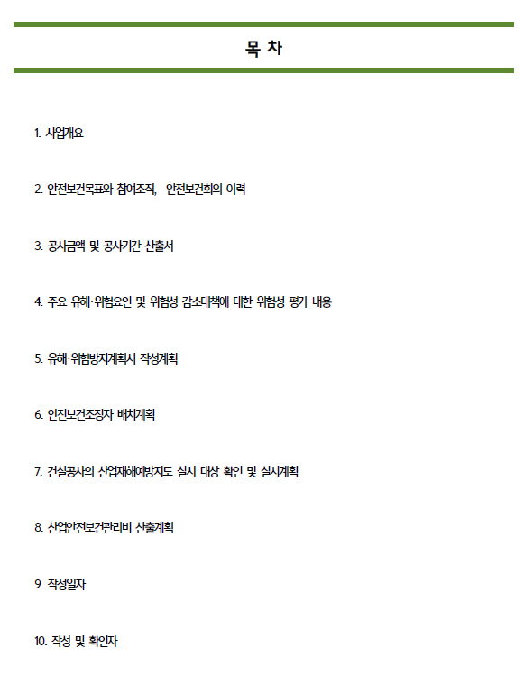 - 안전한 작업을 위한 적정 공사기간 및 공사금액 산출서